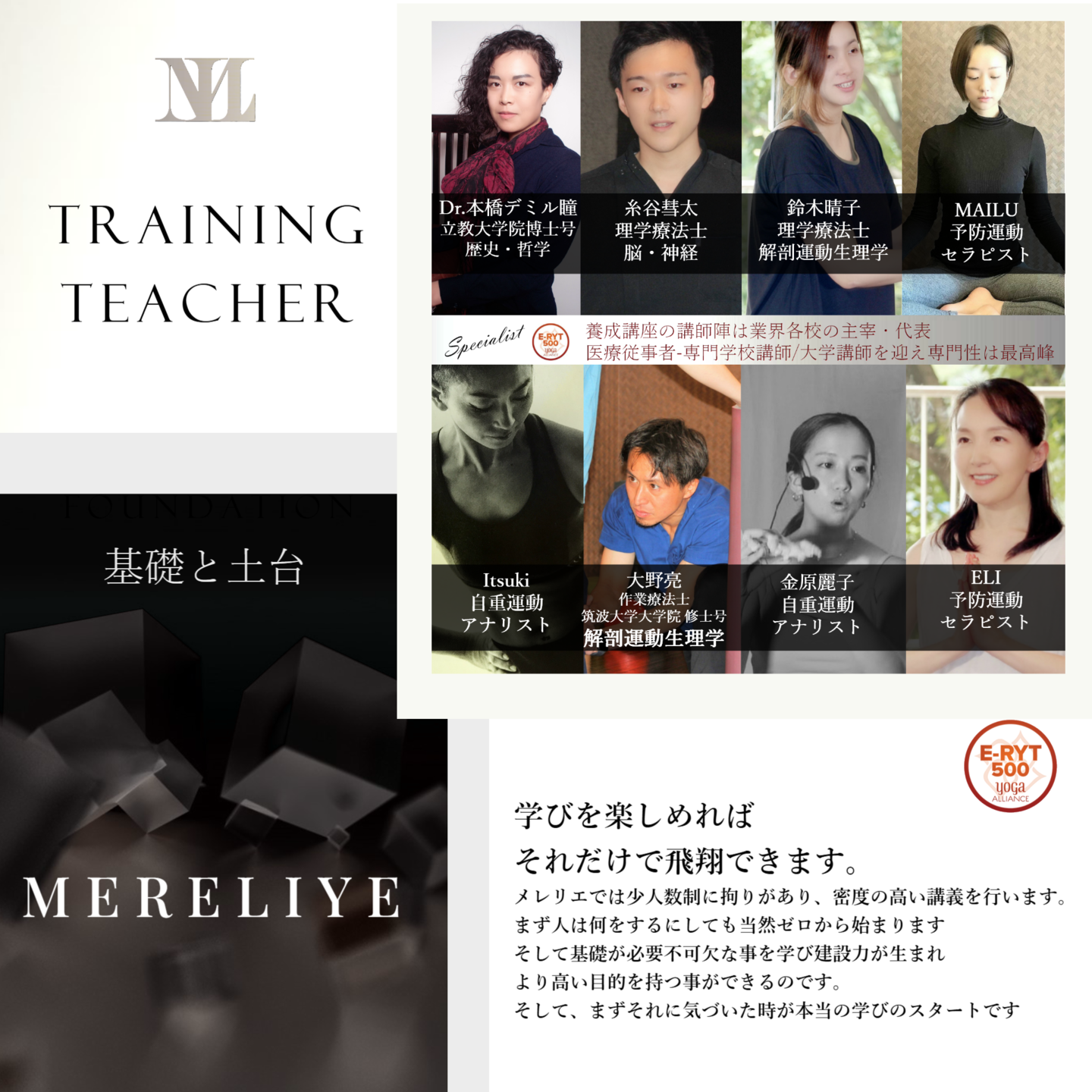 メレリエは17年以上のヨガインストラクター養成講座開講校の歴史がありメディア実績のあるスクールです。少人数に拘りながらも解剖学の基礎知識をもったヨガインストラクターを1000人以上輩出しています。少人数制のスクールとしては輩出人数は全国屈指の伝統校です。